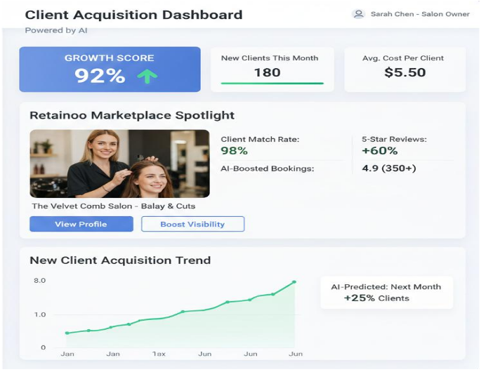 For example, a hair salon in Melbourne used Retainoo Marketplace to attract clients from neighboring suburbs, seeing a significant boost in bookings within weeks without extra marketing costs. The salon also leveraged Retainoo Grow AI to analyze client behavior, trends, and booking patterns, optimizing online visibility and filling previously empty slots. This AI-driven approach helps salons in Melbourne grow faster and smarter.